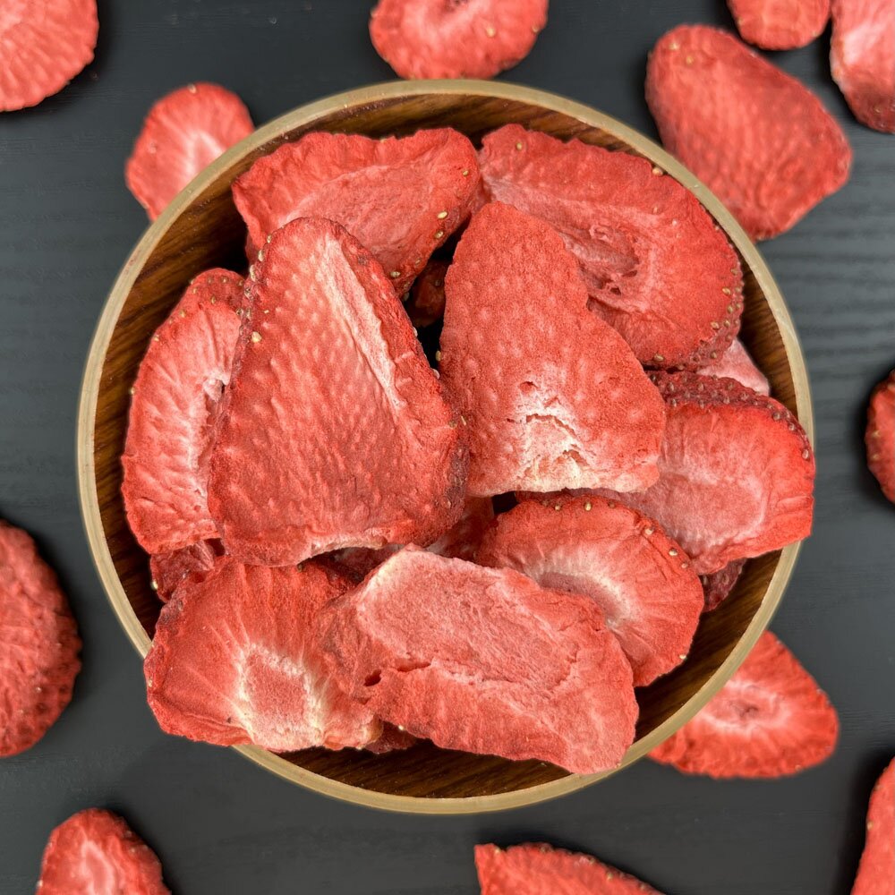 Gefriergetrocknete Früchte sind unglaublich aromatisch und intensiv im Geschmack. Gefriertrocknete Früchte können auch als Zutat in Backwaren und Desserts verwendet werden oder als Topping für Joghurt, Müsli und Smoothies dienen.